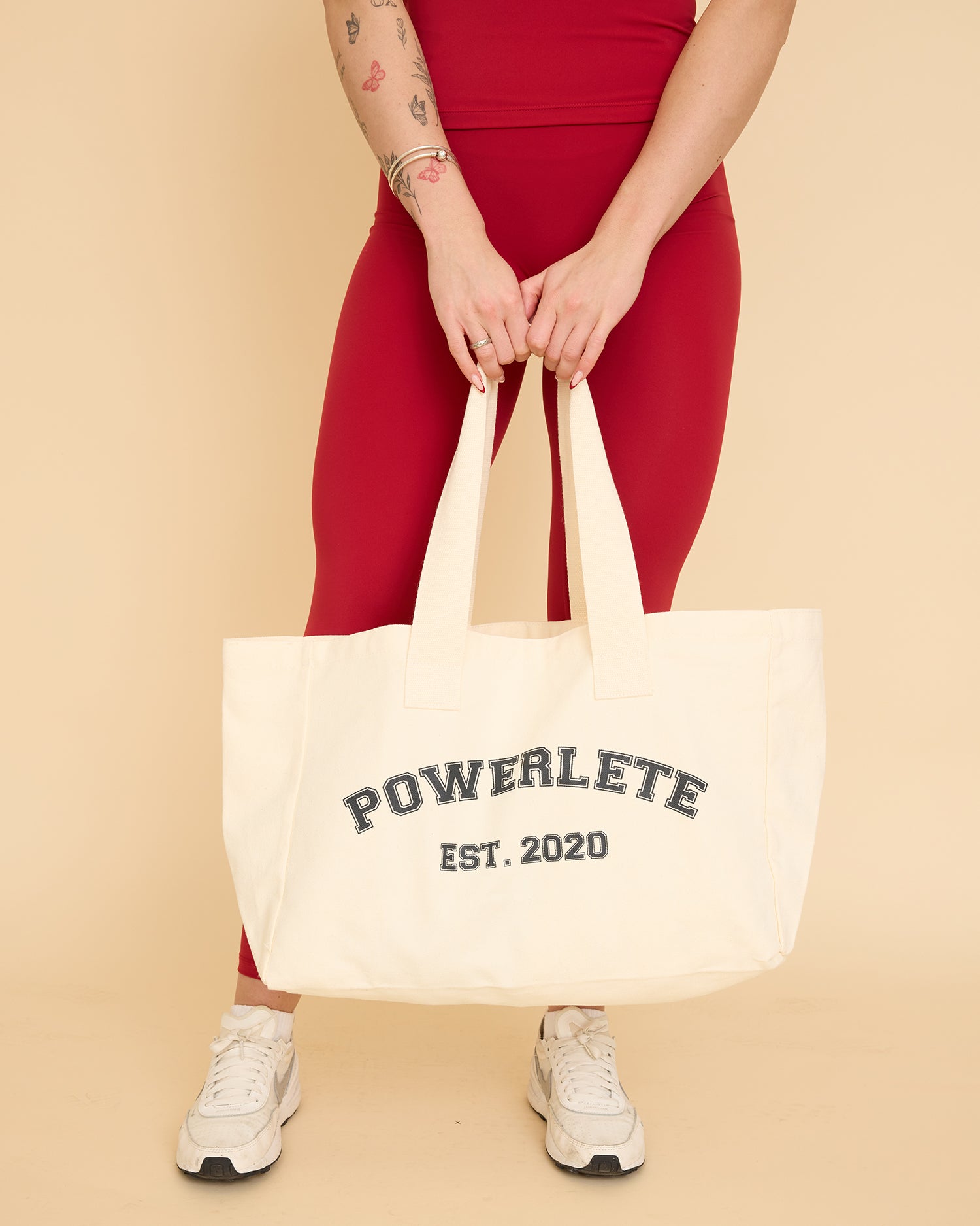 Ti presentiamo la Powerlete Varsity Tote, il tuo nuovo capo essenziale per tutti i giorni. In un beige neutro con un audace logo varsity nero, questa tote è il mix perfetto di stile e funzionalità. Che tu stia andando in palestra, facendo commissioni o uscendo, è costruita per stare al passo con il tuo stile di vita frenetico. Pratica, durevole e senza sforzo, è la tua borsa ideale per qualsiasi cosa tu voglia fare durante la giornata.